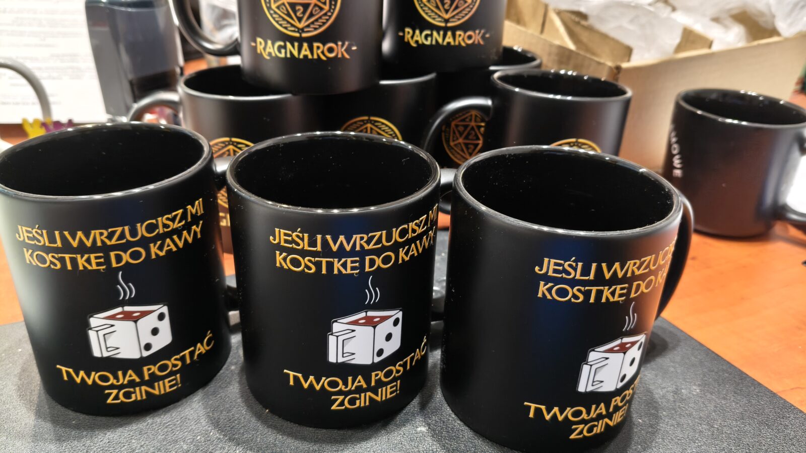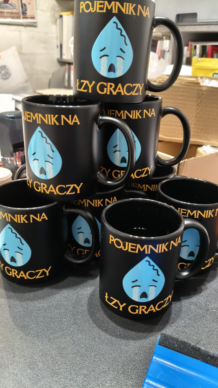 Już teraz możesz zamówić kubki indywidualne w różnych kolorach np. czarnym z nadrukiem wielokolorowym w tym białym.
